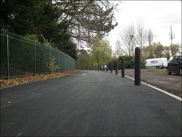 Out side the park by the golf coarse the new footpath is now in place with bollards to protect you from the cars and the playing fields path has also been done