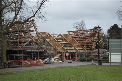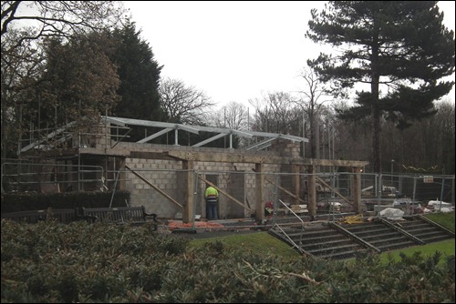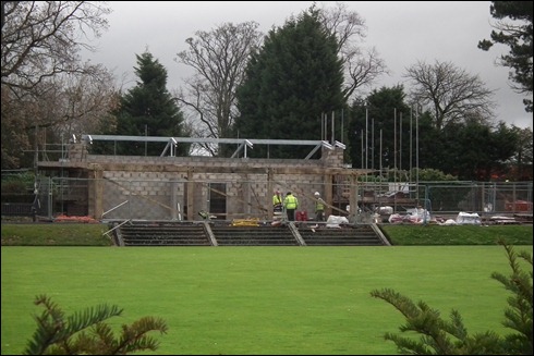 The bowing green now has the metal structure in place but due to the weather and the time of year progress is slow