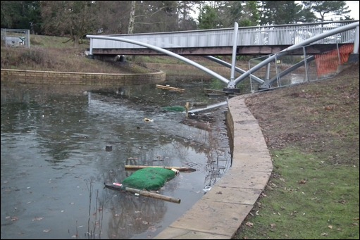 The lake hasnt thawed out full yet and its evident how much rubbish has been throw into the lake by people while its frozen all which will sink once it thaws.
